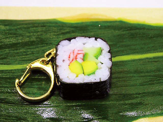 This is a key chain with very authentic-looking Japanese sushi (California Roll).