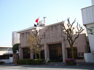 Flowers with support messages before Japanese embassy