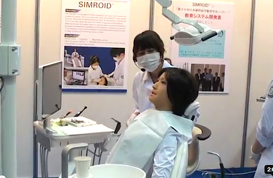 Simroid can move following the dentist’s directions and answer questions (many patterns for the answers are programmed). The interior of her mouth is equipped with sensors which alert trainees if they are causing pain. For example, if the trainee were to touch a nerve while drilling, Simroid says “ouch!” and raises her left hand. Watch this video (^^)